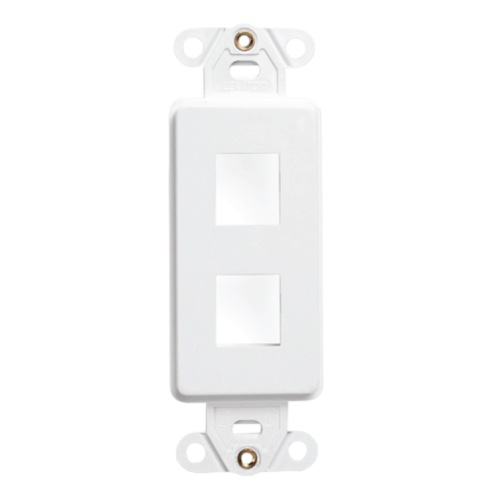 • Los insertos Decora aceptan todos los módulos para insertar QUICKPORT y se utilizan para aplicaciones de voz, datos, audio y video en aberturas NEMA donde se desea un aspecto de la marca Decora.